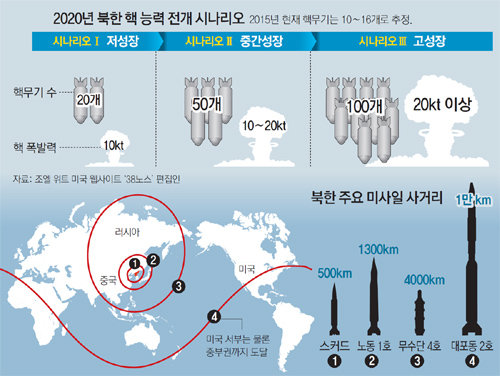 잭슨 연구원은 “북한은 사실상 핵보유국으로서 핵무기 재고가 어느 정도인지 알 수 없는 상태이며 (선제적 핵공격에 대응하는) 보복적 핵타격 능력을 확보하는 쪽으로 진행하고 있다”고 주장했다.