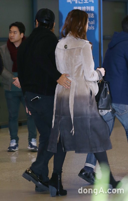 게이트가 열리고 이민정은 수백명의 취재진과 시민들 앞에 섰다. 표정에는 웃음기 하나 없었다. 그는 이병헌의 극진한 에스코트를 받으며 현장을 빠져나갔다.