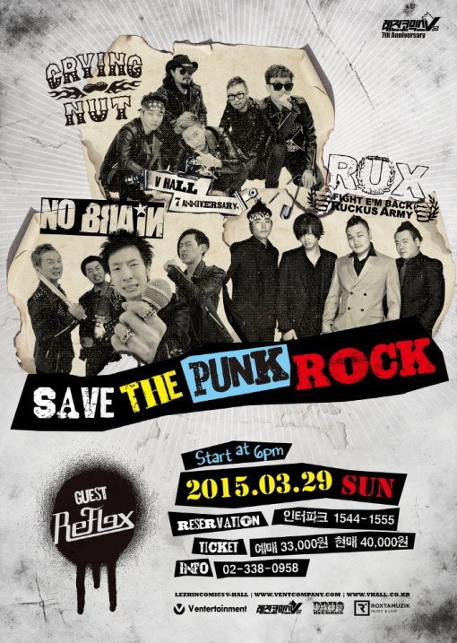 'SAVE THE PUNK ROCK'은 3월 29일 일요일 저녁 6시 레진코믹스 브이홀에서 개최되며 국내 펑크록 뮤직의 발전과 활성화에 보탬이 되고자 하는데 의미를 두고 있다.