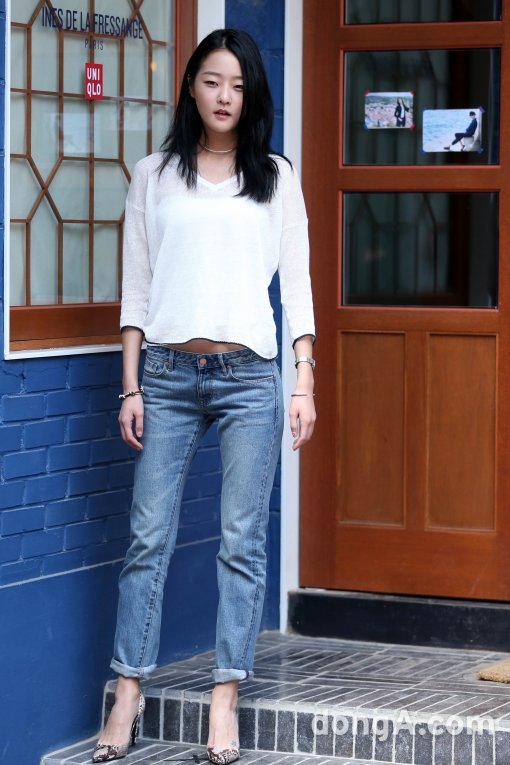 모델 강승현이 26일 오후 서울 강남구 가로수길 빌라 수향에서 열린 '유니클로-이네스 드 라 프레상쥬' 2015 S/S 콜라보레이션 포토월 행사에서 포토타임을 하고 있다.