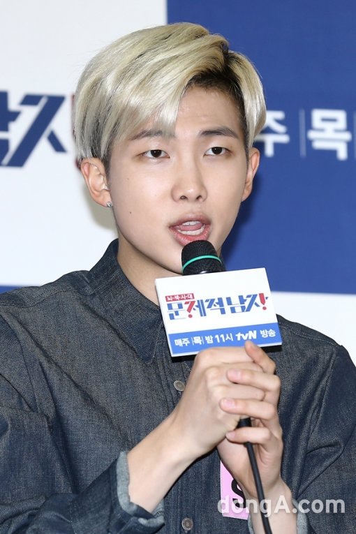 방탄소년단의 멤버 랩몬스터가 26일 오후 서울 마포구 DMS빌딩에서 열린 케이블채널 tvN 새 토크쇼 ‘뇌섹시대-문제적 남자’(이하 뇌색남) 제작발표회에서 질문에 답하고 있다.