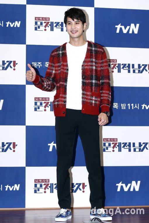 배우 김지석이 26일 오후 서울 마포구 DMS빌딩에서 열린 케이블채널 tvN 새 토크쇼 ‘뇌섹시대-문제적 남자’(이하 뇌색남) 제작발표회에서 포토타임을 하고 있다.