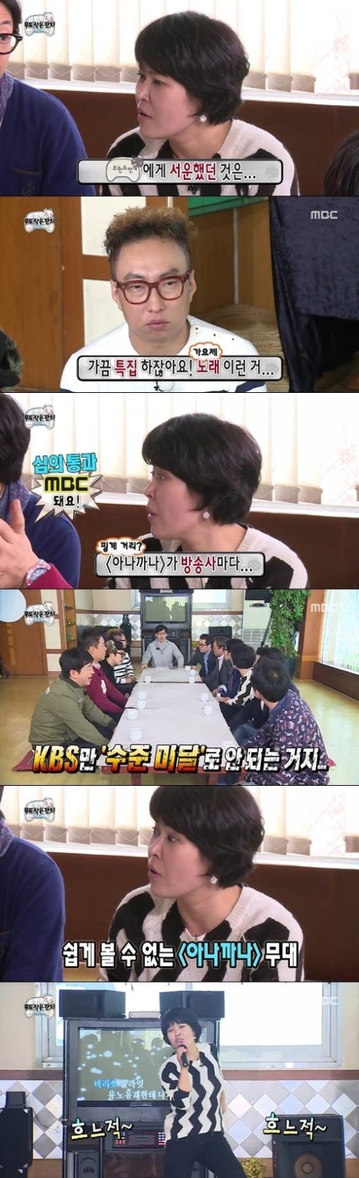 이날 방송 중 조혜련은 "내가 '무한도전'에 좀 서운한 것은 노래를 부르는 특집을 많이 하지 않았나? 나도 가수고 '아나까나' 같은 노래가 있는데 왜 날 안 불렀냐"고 속마음을 털어놨다.