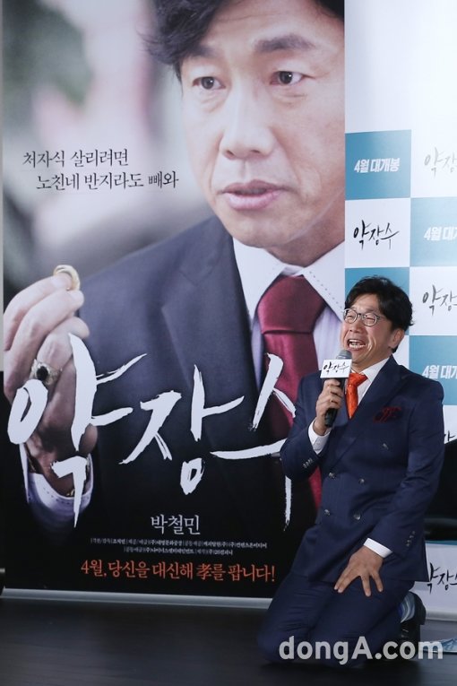 배우 박철민이 3일 오후 서울 동대문구 동대문 메가박스에서 열린 영화 ‘약장수’ 제작보고회에서 기자간담회를 하고 있다.