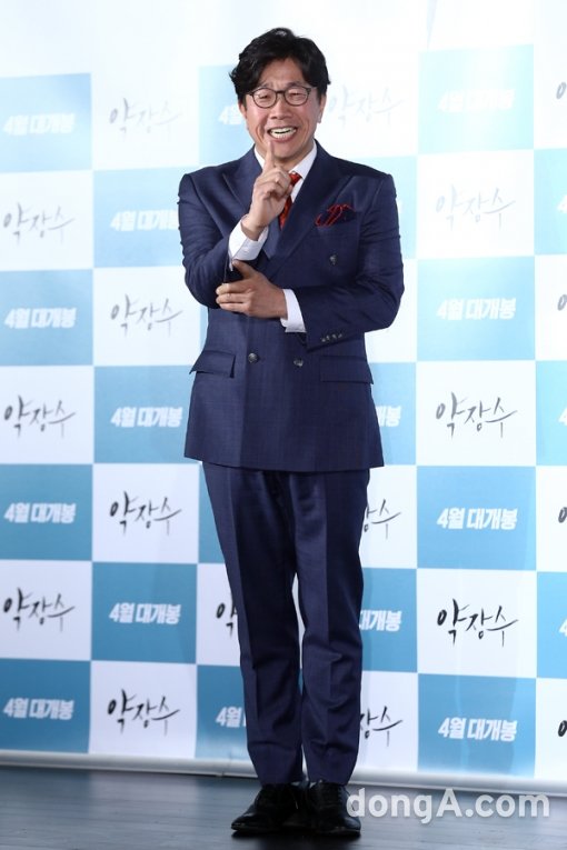 배우 박철민이 3일 오후 서울 동대문구 동대문 메가박스에서 열린 영화 ‘약장수’ 제작보고회에서 포토타임을 하고 있다.
