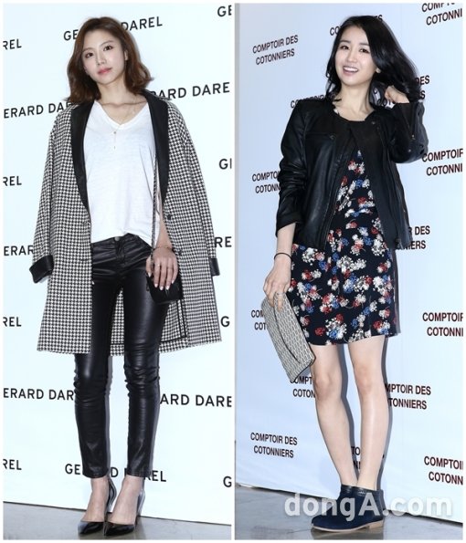 방송인 박수진(왼쪽), 배우 박하선이 4일 오후 서울 강남구 ES갤러리에서 열린 ‘제라르다렐, 꽁뜨와데 꼬또니에 15SS 프레젠테이션’에 참석해 포토타임을 하고 있다.