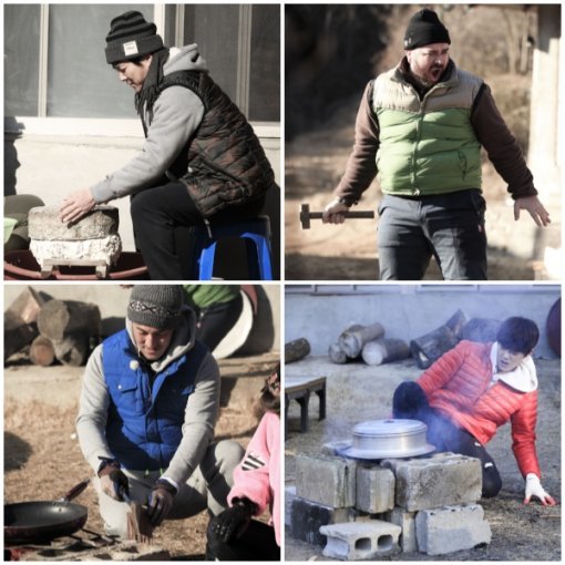 한편 한정수는 평소 몸짱이라는 수식어가 무색하게 얌전한 자태로 장작을 패‘머슴’보다 ‘아씨’에 가까운 모습. 벤지는 임시로 만든 아궁이에 불을 피우려다 ‘멘붕’된 모습이 웃음을 자아낸다.