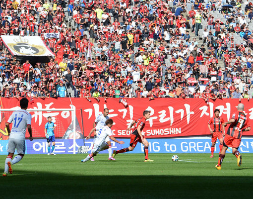 눈에 띄게 줄어든 축구팬들의 발길을 되돌리기 위해 K리그 구성원들은 고민을 거듭하고 있다. 올 시즌에는 클래식(1부리그)과 챌린지(2부리그)를 합쳐 300만 관중이 목표다. 서울월드컵경기장을 찾은 구름 관중이 FC서울-수원삼성의 라이벌전을 지켜보고 있다. 스포츠동아DB