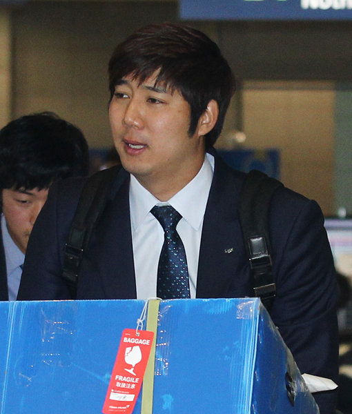 두산 장원준이 4일 전지훈련을 마치고 일본 미야자키에서 귀국하고 있다. 84억원이라는 거액 FA 선수가 됐지만 부담을 갖기보다 부담을 즐기면서 시즌을 보내겠다는 당찬 각오를 밝혔다. 사진제공|스포츠코리아