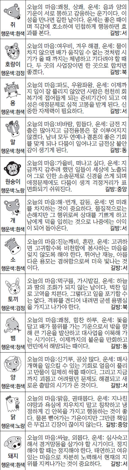 금일 주식, 부동산 매도 행운의 띠: 호랑이,말,개