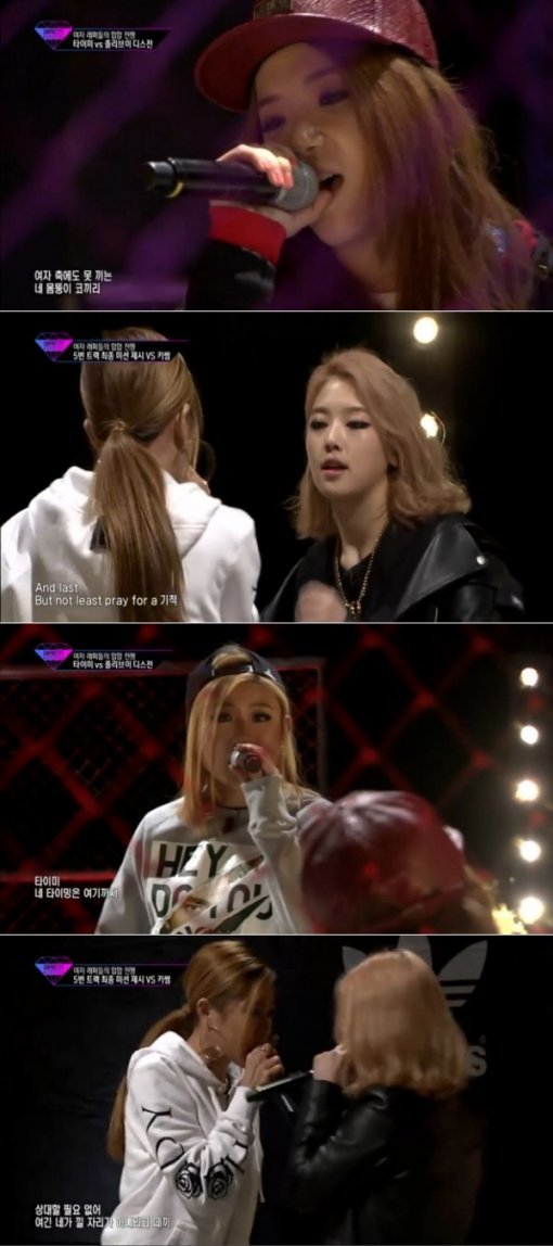 무엇보다 이날 방송에선 과거 ‘디스전’을 통해 앙숙 관계를 형성했던 졸리브이와 타이미가 마침내 정면 대결을 펼쳐 보는 이들의 심장을 졸이게 만들었다. 서로에 대한 도발에 격한 감정을 주체하지 못하고 살벌한 언쟁을 펼친 두 사람은 그간 쌓아왔던 감정을 담은 랩으로 독기 어린 대결을 펼쳤다. 옆에서 지켜보던 출연진들 모두 두 사람의 엄청난 기 싸움에 숨을 죽인 모습. 격렬한 대결을 펼친 후 두 사람은 “시원했다”, “이제 더는 할 마음이 없다”는 말로 심정을 표하기도 해 눈길을 끌었다.