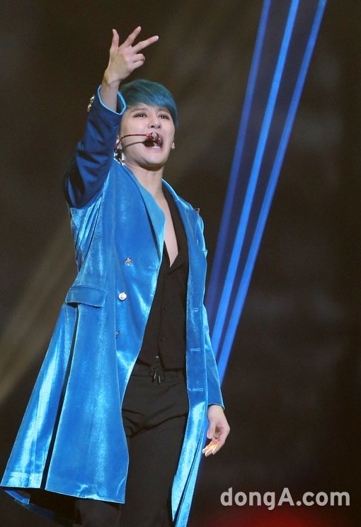 그룹 JYJ의 김준수(XIA)가 7일 오후 서울 송파구 잠실실내체육관에서 열린 '2015 XIA ASIA TOUR CONCERT IN SEOUL' 콘서트에서 화려한 공연을 펼치고 있다.