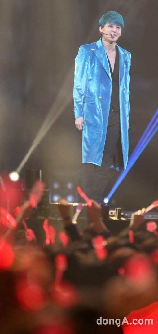 그룹 JYJ의 김준수(XIA)가 7일 오후 서울 송파구 잠실실내체육관에서 열린 '2015 XIA ASIA TOUR CONCERT IN SEOUL' 콘서트에서 화려한 공연을 펼치고 있다.