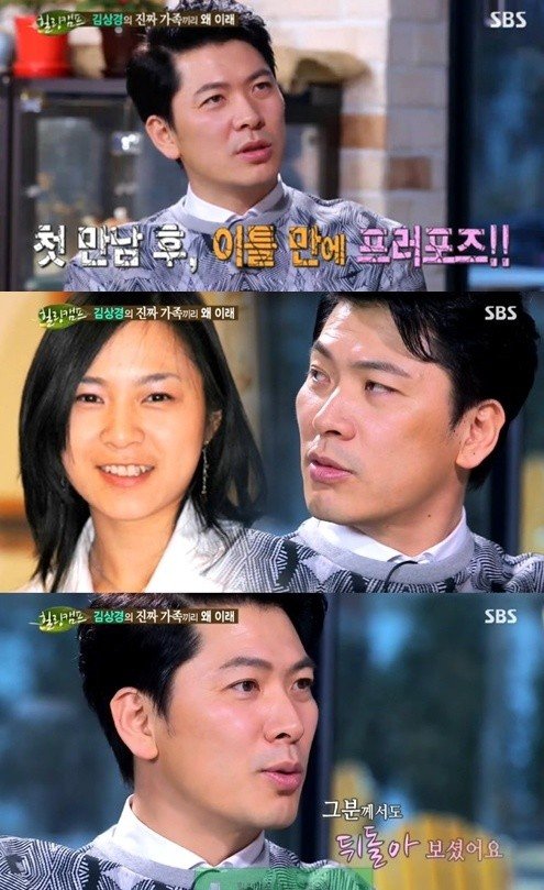그는 MC들로부터 “아내와 만난 지 이틀 만에 결혼하자고 했다고 들었다.정말이냐”는 질문을 받았고 이에 김상경은“아내와 만난 지 이틀 만에 청혼했다. 많은 여배우들과 함께 연기를 할때도 떨리진 않았는데 어찌보면 떨었던 첫 여자다”라며 아내를 소개했다.