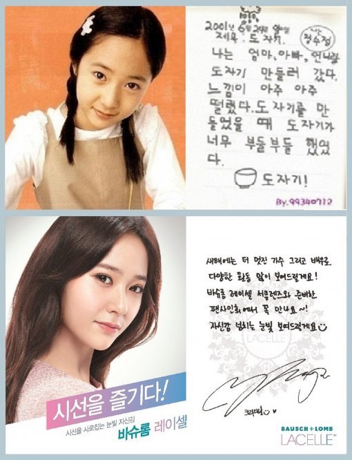 에프엑스 크리스탈이 미모만큼 사랑스러운 글씨체로 주목받고 있다.