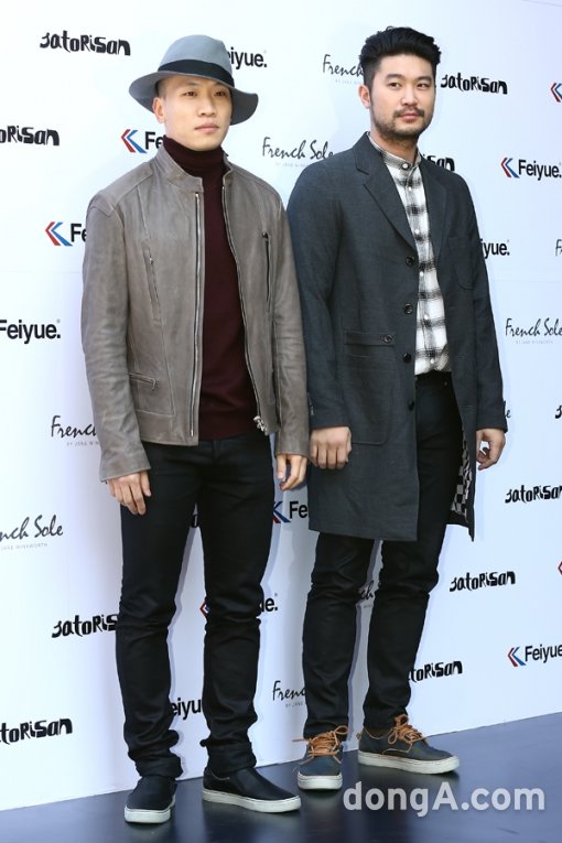 다이나믹듀오가 10일 오후 서울시 강남구 유나이티드 레이블스 매장에서 열린 2015 유나이티드 레이블스 S/S 프레젠테이션에 참석해 포토타임을 하고 있다.