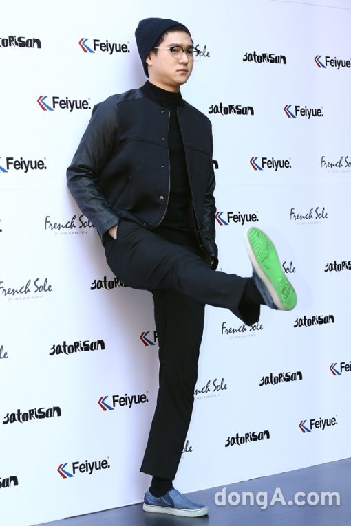 배우 고경표가 10일 오후 서울시 강남구 유나이티드 레이블스 매장에서 열린 2015 유나이티드 레이블스 S/S 프레젠테이션에 참석해 포토타임을 하고 있다.