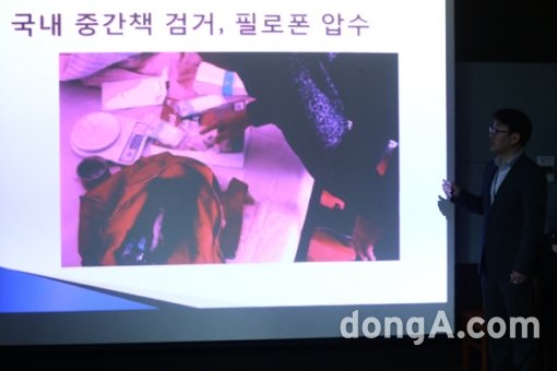 성남수정경찰서 백남수 형사과장이 11일 오후 경기도 성남 수정경찰서에서 열린 탤런트 김성민의 마약 혐의관련 브리핑을 하고 있다.