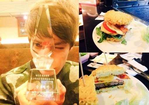 사진 속 파비앙은 MBC 에브리원 ‘100인의 선택-최고라면’에서 받은 ‘최고 셰프’ 수상패와 자신이 만든 라면버거를 들고 포즈를 잡았다.