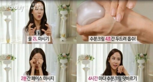 또한 조여정은 2.4.2.4 법칙에 대해 물 2L 마시기, 수분 크림 4초간 두드려 흡수시키기, 2분간 페이스 마시지하기, 4시간 마다 수분 크림 덧바르기 등 뷰티 노하우를 전수했다.
