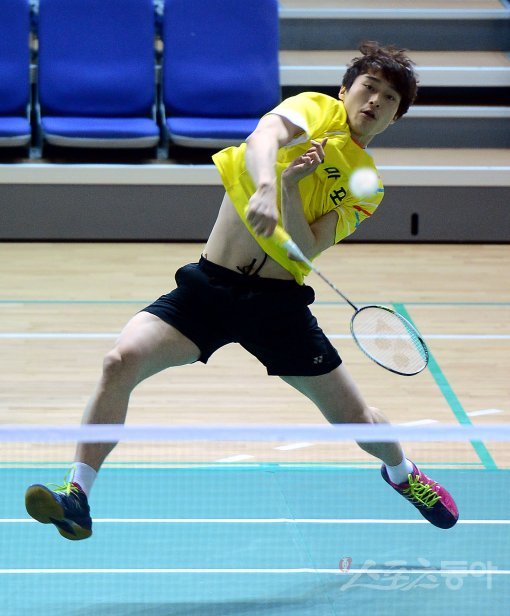 15일 남자일반부 단체전 단식경기에서 요넥스 홍지훈이 스매싱 공격을 하고 있다.