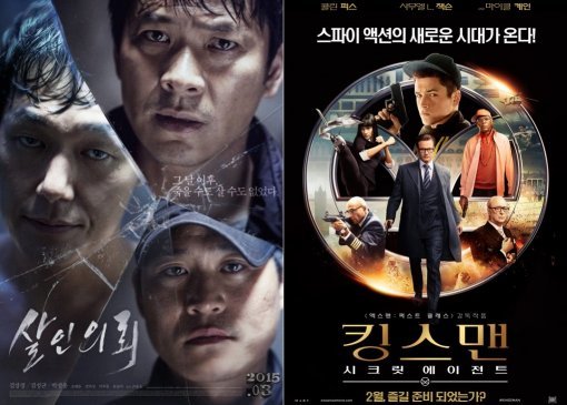 16일 영화진흥위원회 영화관입장권 통합전상망에 따르면 지난 주말 영화 ‘살인의뢰’와 ‘킹스맨: 시크릿 에이전트’가 나란히 박스오피스 1위와 2위에 올랐다.