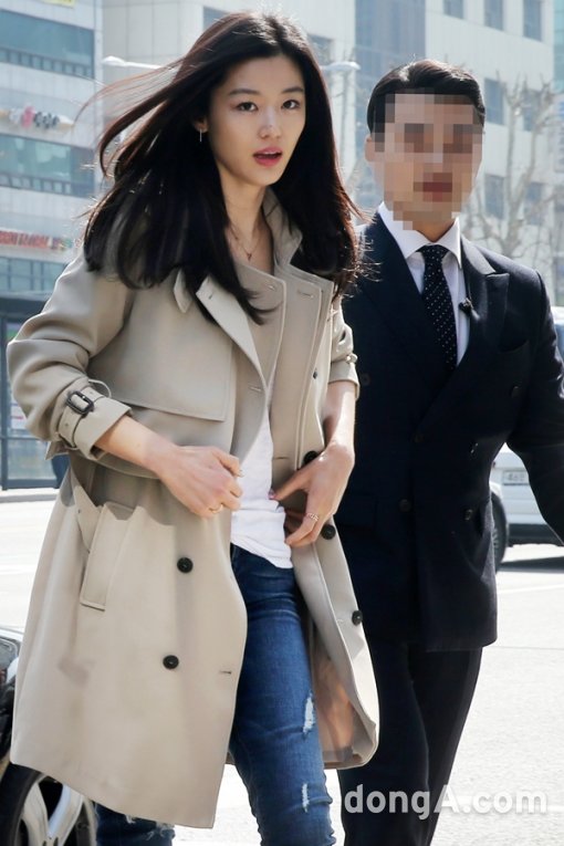 전지현이 16일 오전 서울 서초구 반포동 여성복 브랜드 '쉬즈미스'의 메가샵 논현점 오픈 1주년 기념식에 참석하고 있다. 이날, 전지현은 차분하고 세련된 느낌의 베이지 트렌치코트를 착용해 화려한 봄패션을 선보여 시선을 사로잡았다.