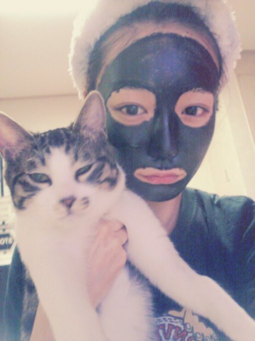 배우 신소율이 고양이와 함께한 팩 셀카를 공개했다.