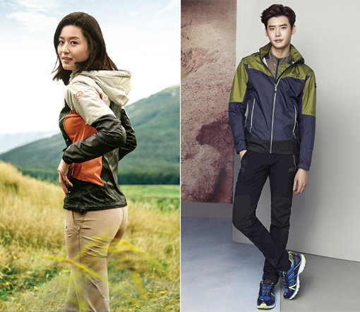 기온변화가 잦은 초봄의 산행을 즐기기 위해서는 방풍, 투습, 방수기능이 뛰어난 바람막이 재킷이 필수다. 올해는 화려한 패턴, 컬러보다는 심플한 디자인과 내추럴한 색상의 제품이 인기를 끌고 있다. ‘벤트 하이브리드 프린트 재킷’을 입고 있는 네파의 전속모델 전지현(사진 왼쪽)과 ‘님부스 재킷’을 입은 밀레 전속모델 이종석. 사진제공|네파·밀레
