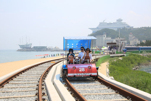 지난해 8월1일 개장한 정동진 레일바이크는 모래시계 공원에서 등명해변 인근까지 왕복 5.1km 구간을 운영한다. 국내에서 유일하게 전 구간이 바다를 볼 수 있는 레일바이크다. 또 다른 레일바이크와 달리 손과 발을 모두 사용할 수 있는 핸드 레일바이크 형식이어서 어느 구간이나 자동모드로 변경이 가능해 어린이나 노인들도 쉽게 즐길 수 있다. 그 덕분에 개장 초부터 높은 인기를 누렸다. 2인승과 4인승으로 운영하며 요금은 각각 2만원, 3만원이다. 정동진 레일바이크는 모래시계 공원과 같은 정동진의 관광명소와 함께 삼척까지 하루 2∼3회 왕복 운행하는 바다열차와 인근 강릉의 안목커피거리, 경포 벚꽃축제까지 함께 즐길 수 있는 점이 매력이다.