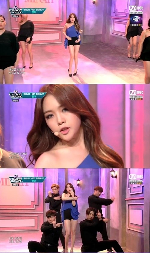 19일 방송된 Mnet ‘엠카운트다운’에서는 민아가 첫 솔로 미니앨범 타이틀곡 ‘나도 여자예요’를 열창하는 모습이 전파를 탔다.