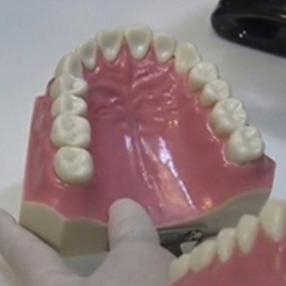 그 상태에서 위쪽 치아에 사용할 때는 치실 아래를 엄지로 받쳐주고, 아래쪽 치아에 사용할 때는 치실 위를 검지로 눌러준 후 치아와 치아 사이에 톱질하듯 살살 밀어 넣는다.