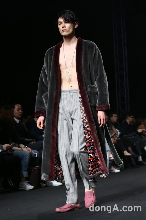 모델 김원중이 20일 오후 서울 동대문디자인플라자(DDP)에서 열린 '2015 F/W 서울패션위크' 디자이너 고태용 패션쇼에서 런웨이를 걷고 있다.