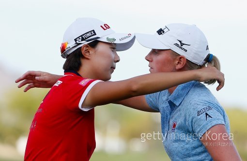 김효주(왼쪽·20·롯데)가 23일(한국시간) 미국 애리조나주 피닉스의 와일드 파이어 골프클럽(파72)에서 열린 미국여자프로골프(LPGA) 투어 파운더스컵에서 우승을 차지한 뒤 준우승자 스테이시 루이스(미국·18언더파 270타)와 포옹하고 있다.