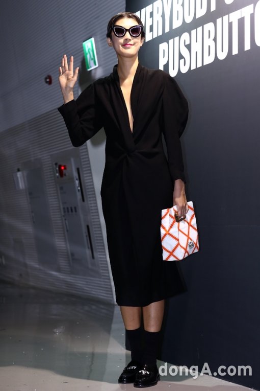 방송인 홍진경이 23일 오후 서울 동대문디자인플라자(DDP)에서 열린 '2015 F/W 서울패션위크' 디자이너 박승건 컬렉션에서 포토타임을 하고 있다.