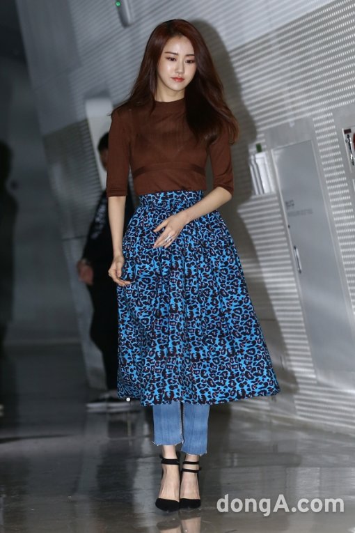 포미닛의 멤버 허가윤이 23일 오후 서울 동대문디자인플라자(DDP)에서 열린 '2015 F/W 서울패션위크' 디자이너 박승건 컬렉션에서 포토타임을 하고 있다.
