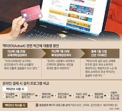 관계자는 “그동안 온라인쇼핑시 번거로웠던 액티브X가 사라지면서 외국의 쇼핑몰과 같이 간편한 결제가 가능하게 된다”고 전했다.