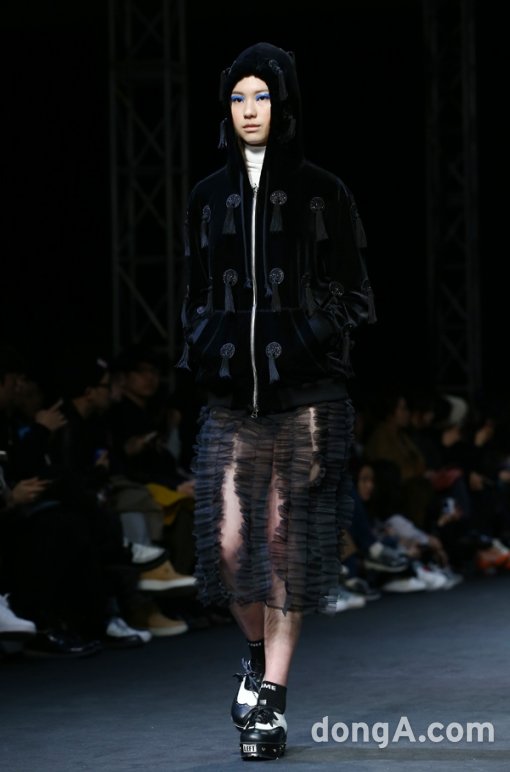 모델이 23일 오후 서울 동대문디자인플라자(DDP)에서 열린 '2015 F/W 서울패션위크' 디자이너 박승건 컬렉션에서 런웨이를 걷고 있다.