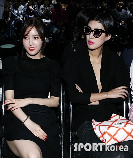 걸그룹 티아라 효민, 모델 홍진경이 23일 오후 서울 중구 동대문디자인플라자 아트홀1관에서 열린 F/W 2015 서울패션위크 ‘박승건 푸쉬버튼 컬렉션’에 참석해 포토타임을 갖고 있다. ‘F/W 2015 서울패션위크’는 20일부터 25일까지 6일간 서울 동대문디자인플라자(DDP)에서 개최된다.
