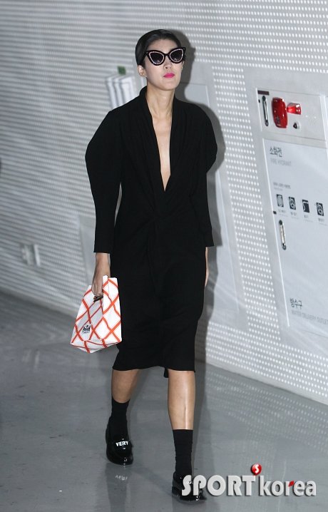 모델 홍진경이 23일 오후 서울 중구 동대문디자인플라자 아트홀1관에서 열린 F/W 2015 서울패션위크 ‘박승건 푸쉬버튼 컬렉션’에 참석하고 있다. ‘F/W 2015 서울패션위크’는 20일부터 25일까지 6일간 서울 동대문디자인플라자(DDP)에서 개최된다.