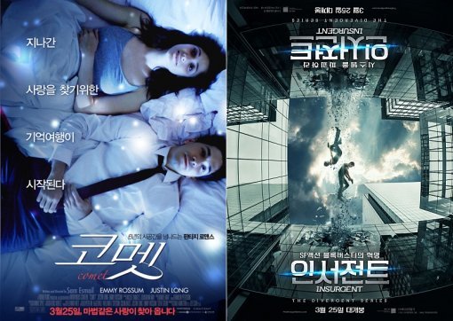 ‘코멧’과 같은 날 개봉하는 영화 ‘인서전트’는 자유를 통제하는 국가 시스템을 파괴하기 위한 ‘인서전트’들의 반란을 그린 SF 블록버스터물이다. 전편 ‘다이버전트’의 주인공 ‘트리스’가 자신들의 세계의 비밀을 품은 상자를 열기 위해 시뮬레이션 전쟁을 치르며 벌어지는 이야기를 담는다. 다이내믹한 액션을 담은 다섯 개의 시뮬레이션 전쟁은 마치 ‘인셉션’(2010)의 꿈 속의 꿈처럼 상상과 현실의 경계를 허무는 영상미로 관객들을 사로잡을 예정이다.