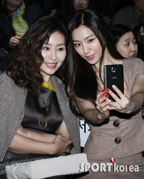 배우 최명길, 서지혜가 23일 오후 서울 중구 동대문디자인플라자 아트홀1관에서 열린 F/W 2015 서울패션위크 ‘지춘희 MISS GEE COLLECTION’에 참석해 셀카 촬영을 하고 있다. ‘F/W 2015 서울패션위크’는 20일부터 25일까지 6일간 서울 동대문디자인플라자(DDP)에서 개최된다.