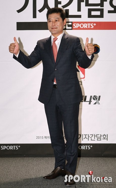 이종범 해설위원이 24일 오전 서울 중구 소공로 프라자호텔에서 진행된 MBC스포츠플러스 ‘2015 메이저리그 & KBO리그’ 기자간담회에 참석해 포토타임을 갖고 있다.‘2015 메이저리그 & KBO리그’는 메이저리그와 프로야구의 정규시즌 개막을 앞두고 10년 연속 프로야구 정규시즌 시청률 1위 채널인 MBC스포츠플러스의 막강 중계진과 차별화된 중계기술력을 소개하고자 개최하는 행사이다. 또한 야구 중계 뿐만아니라 중계 직후, 그날의 경기를 바로 생방송으로 분석하는 야구 하이라이트 프로그램에도 차별화된 시스템을 선보일 예정이다.