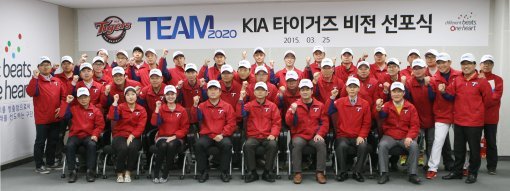 KIA는 이날 ‘야구의 새로운 가치를 창출함으로써 한국프로야구의 미래를 선도하는 구단’이라는 비전과 함께 비전 달성을 위한 4대 추진전략 및 실행계획이 담긴 ‘TEAM 2020’을 선포했다. 야구 그 이상의 가치 실현과 야구 속에 내재된 여가문화의 새로운 가치를 창출해 미래를 내다보는 긴 안목으로 고객가치를 실현하고 리더십을 발휘해 한국야구의 발전을 이끄는 구단으로서 그 위상을 확고히 다져나가겠다는 의지가 담긴 비전은 4대 추진 전략인 ‘TEAM 2020’으로 집약된다. ‘TEAM 2020’은 2020년까지 ▲Tomorrow(미래성장동력 창출) ▲Excellence(고객행복 구현) ▲Ability(최고의 경기력 실현) ▲Management(구단경영능력 강화)를 실현하겠다는 것을 의미한다.