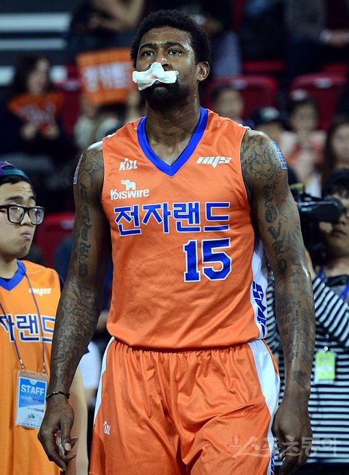 25일 오후 인천삼산실내체육관에서 열린 ‘2014~2015 KCC프로농구’ 4강 플레이오프 인천 전자랜드 대 원주 동부 경기에서 인천 전자랜드 리카르도 포웰이 부상을 입고 치료를 하기 위해 코트를 떠나고 있다.