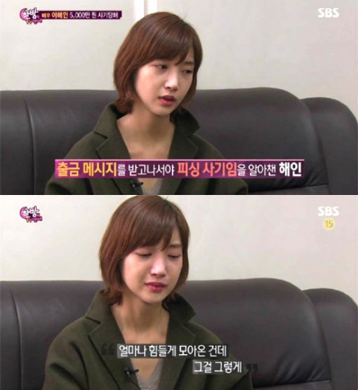 배우 이해인이 보이스피싱 사기를 당했다고 고백했다.