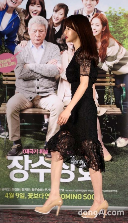 배우 황우슬혜가 26일 오후 서울 왕십리CGV에서 열린 영화 장수상회 언론시사회에 참석하고 있다.