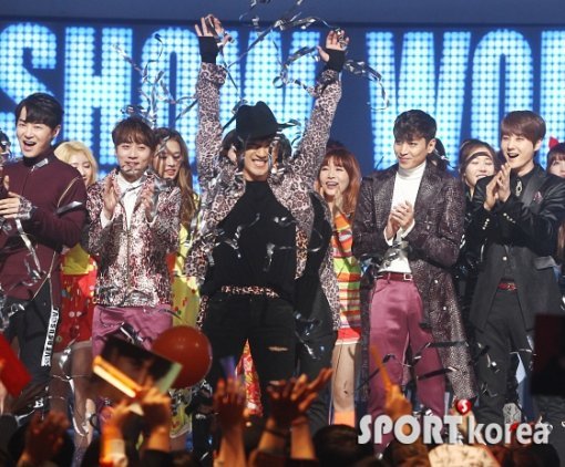그룹 신화가 26일 오후 서울 마포구 상암동 CJ E&M센터에서 진행된 Mnet ‘엠카운트다운’에 출연해 1위의 영광을 차지하고 있다.