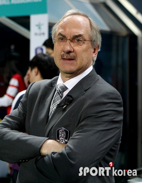 27일 오후 8시 대전월드컵경기장에서 열린 대한민국 대 우즈베키스탄 축구 친선경기에 앞서 한국 대표팀 슈틸리케 감독이 독일 항공기 추락을 애도하는 까만색 리본을 달고 있다.