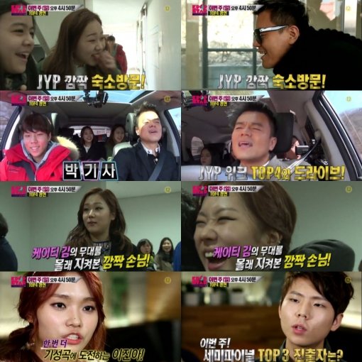 무엇보다 TOP4 숙소에 깜짝 방문한 박진영이 “박기사라고 불러”라고 허물없이 자신의 호칭을 정한 후 승용차를 직접 운전하고, 음악까지 선곡해 들려주는 의외의 모습이 공개돼 시청자들의 호기심을 불러일으키고 있다.